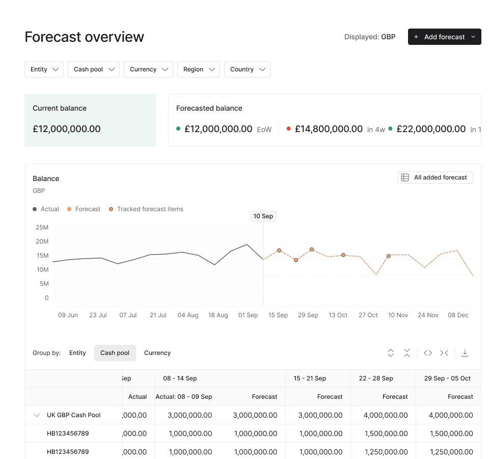 Get full visibility and confidence knowing how much cash you need, when and where it needs to be